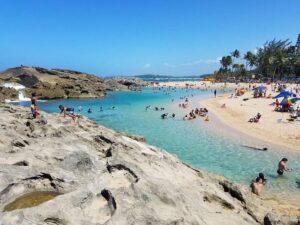 El Escambrón Beach, a popular urban beach in San Juan, Puerto Rico, is known for its calm, shallow waters, golden sand, and proximity to Old San Juan and Condado, making it a great spot for swimming, snorkeling, and relaxing