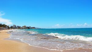 El Escambrón Beach, a popular urban beach in San Juan, Puerto Rico, is known for its calm, shallow waters, golden sand, and proximity to Old San Juan and Condado, making it a great spot for swimming, snorkeling, and relaxing